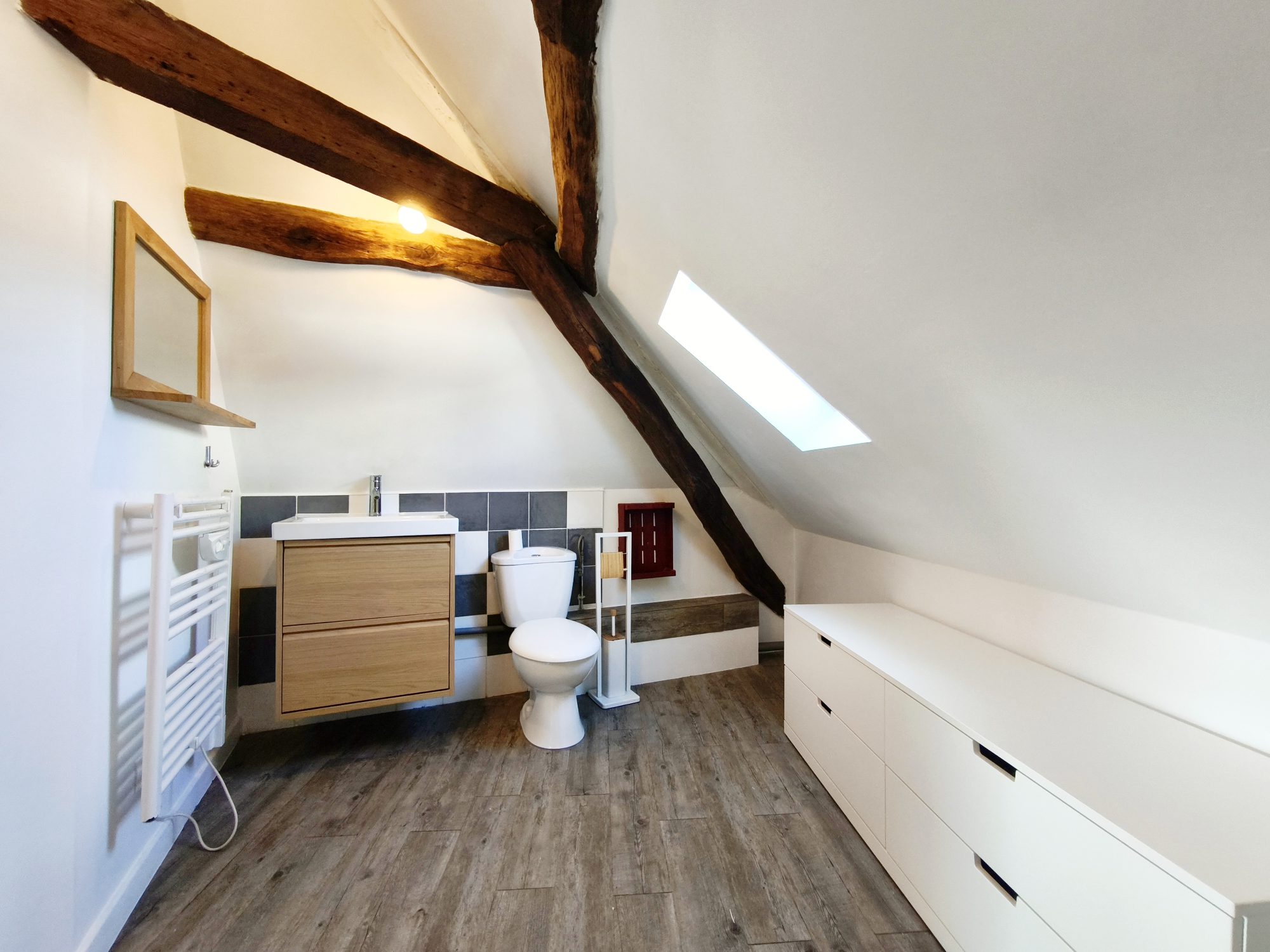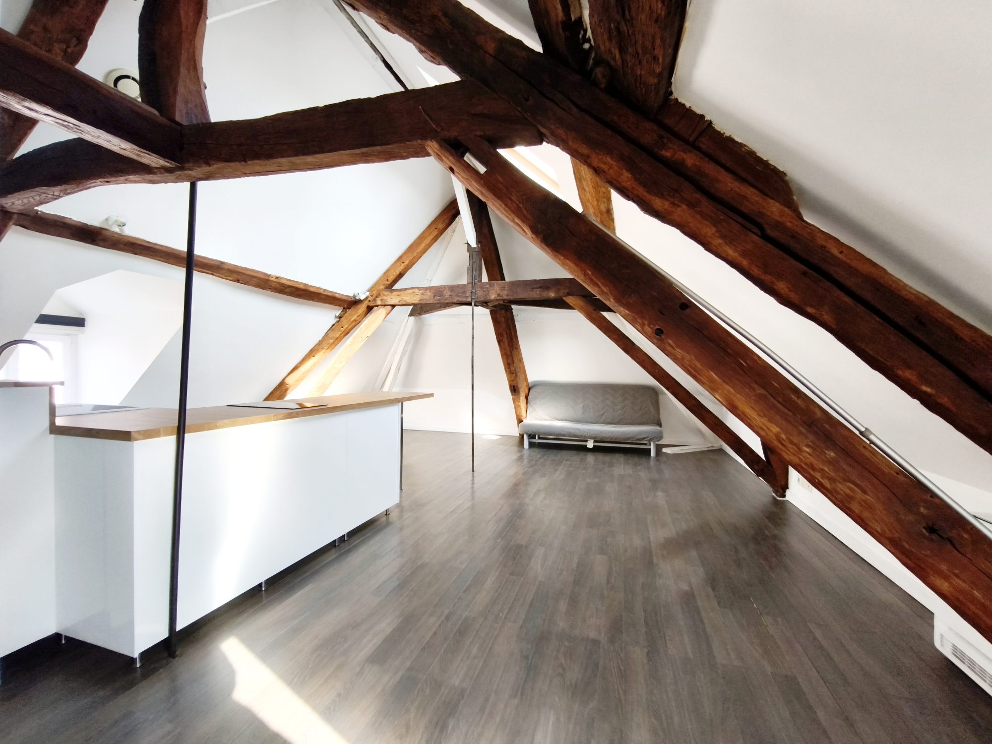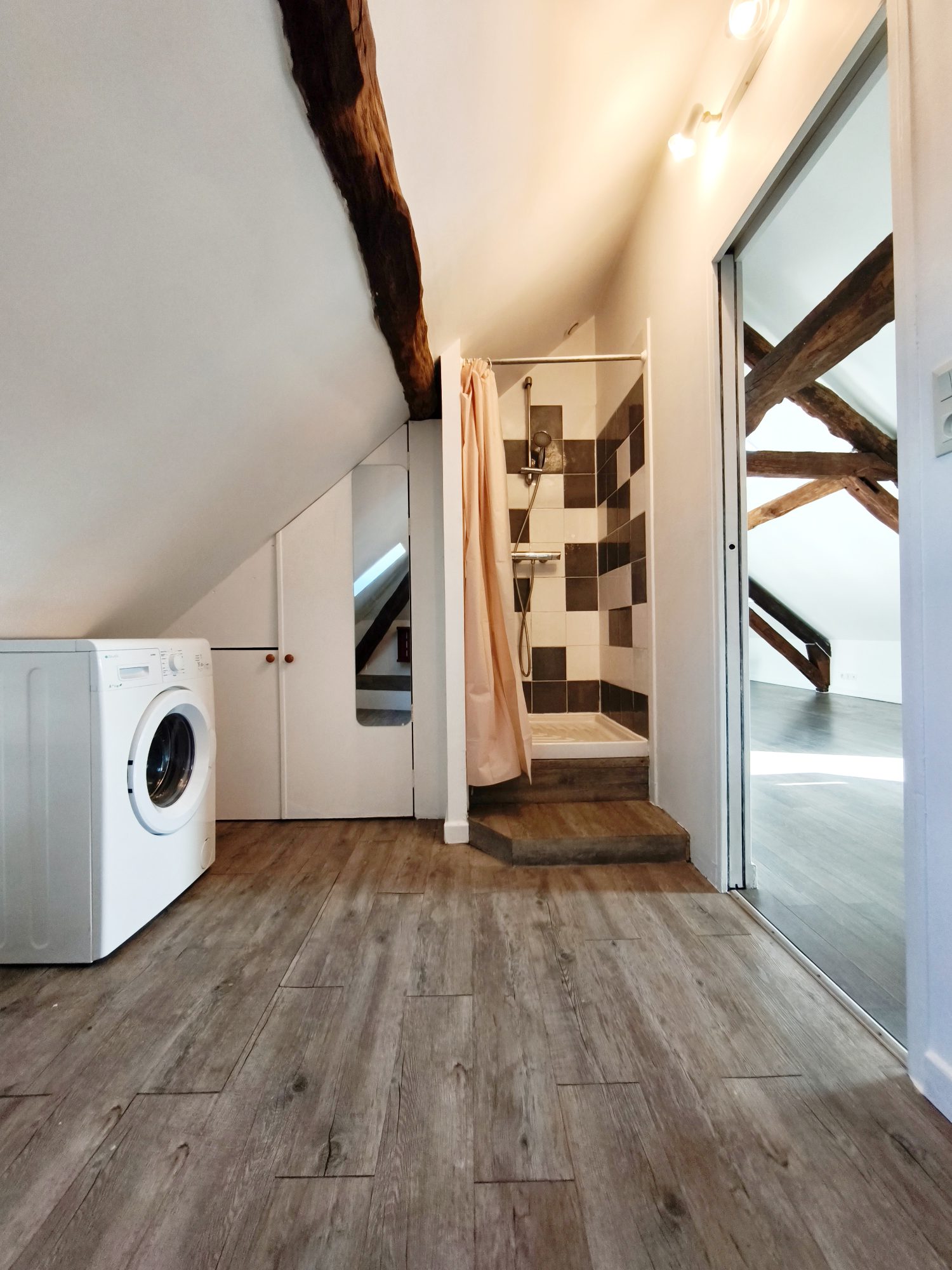 Appartement coup de coeur, rénové, composé d’une pièce, d’une superficie de 27 m2 environ et comprenant au rdc une entrée et à l’étage une pièce de vie (salon / cuisine aménagée et équipée d’une plaque de cuisson et d’un micro-ondes) et une salle d’eau avec wc.