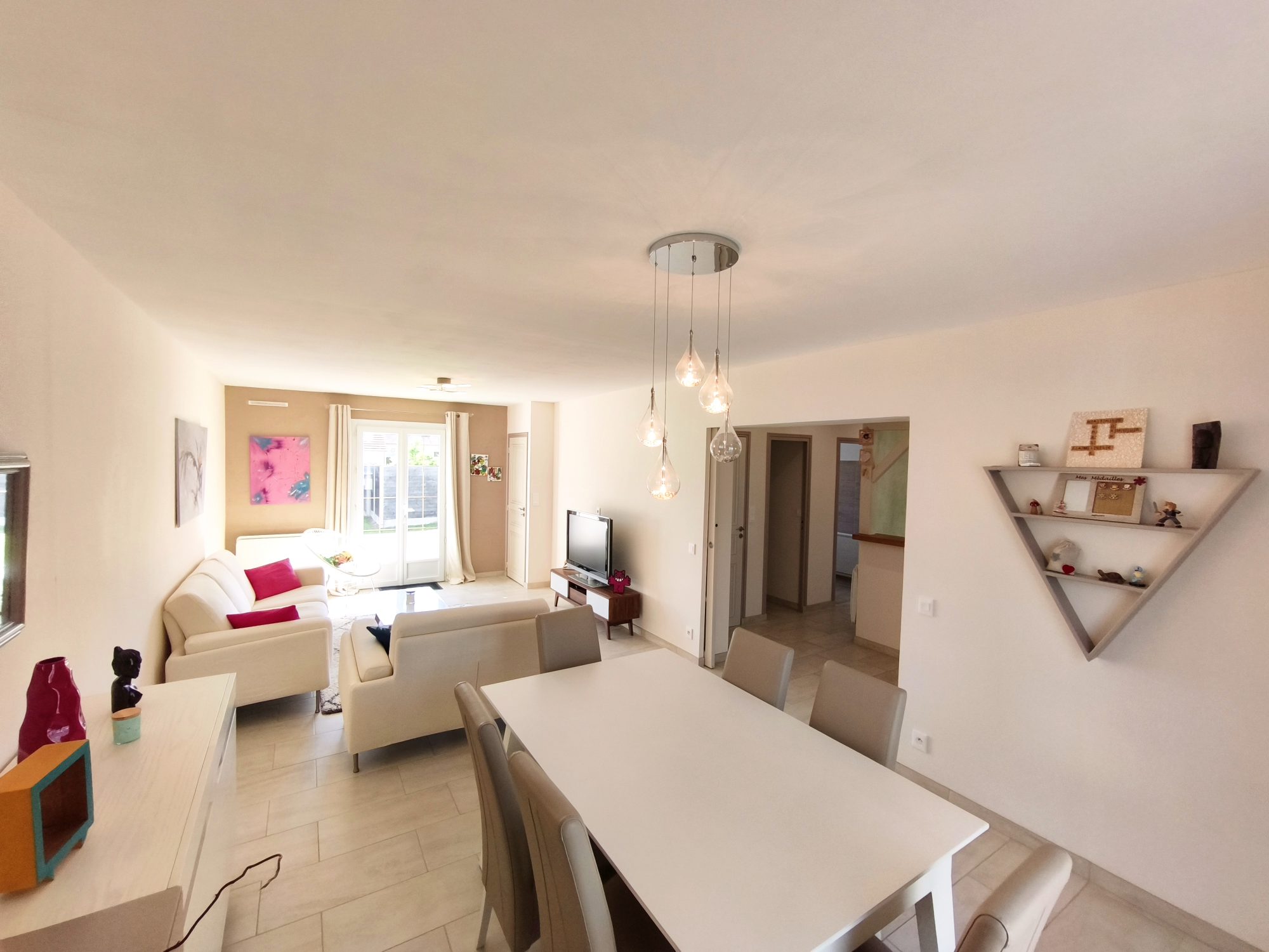 Le tout sur un terrain clos d’une superficie de 572 m2 avec terrasse en bois. Des dépendances complète le bien.