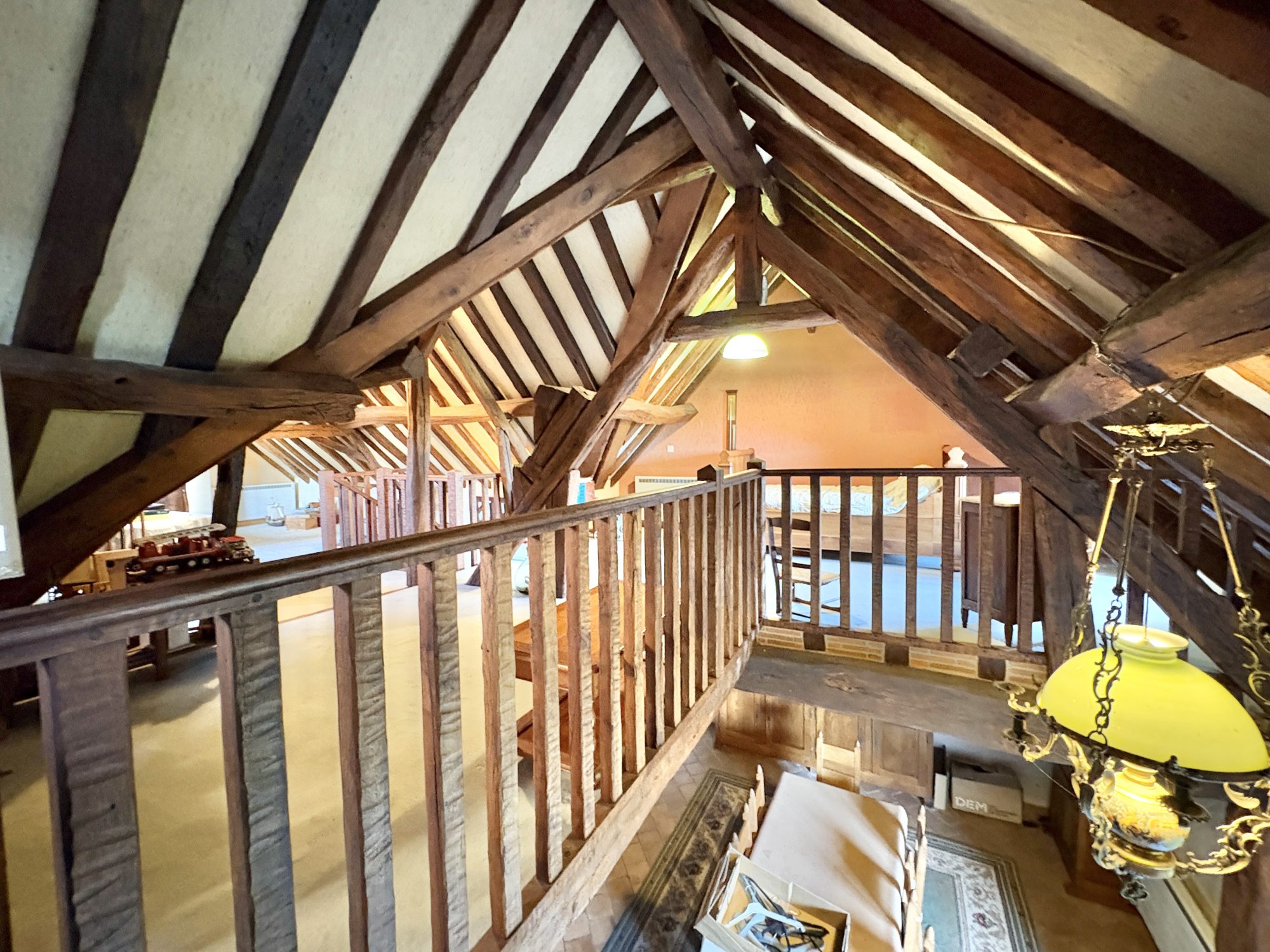 A l’étage : un très grand palier pouvant être aménager en deux chambres et un palier bureau.