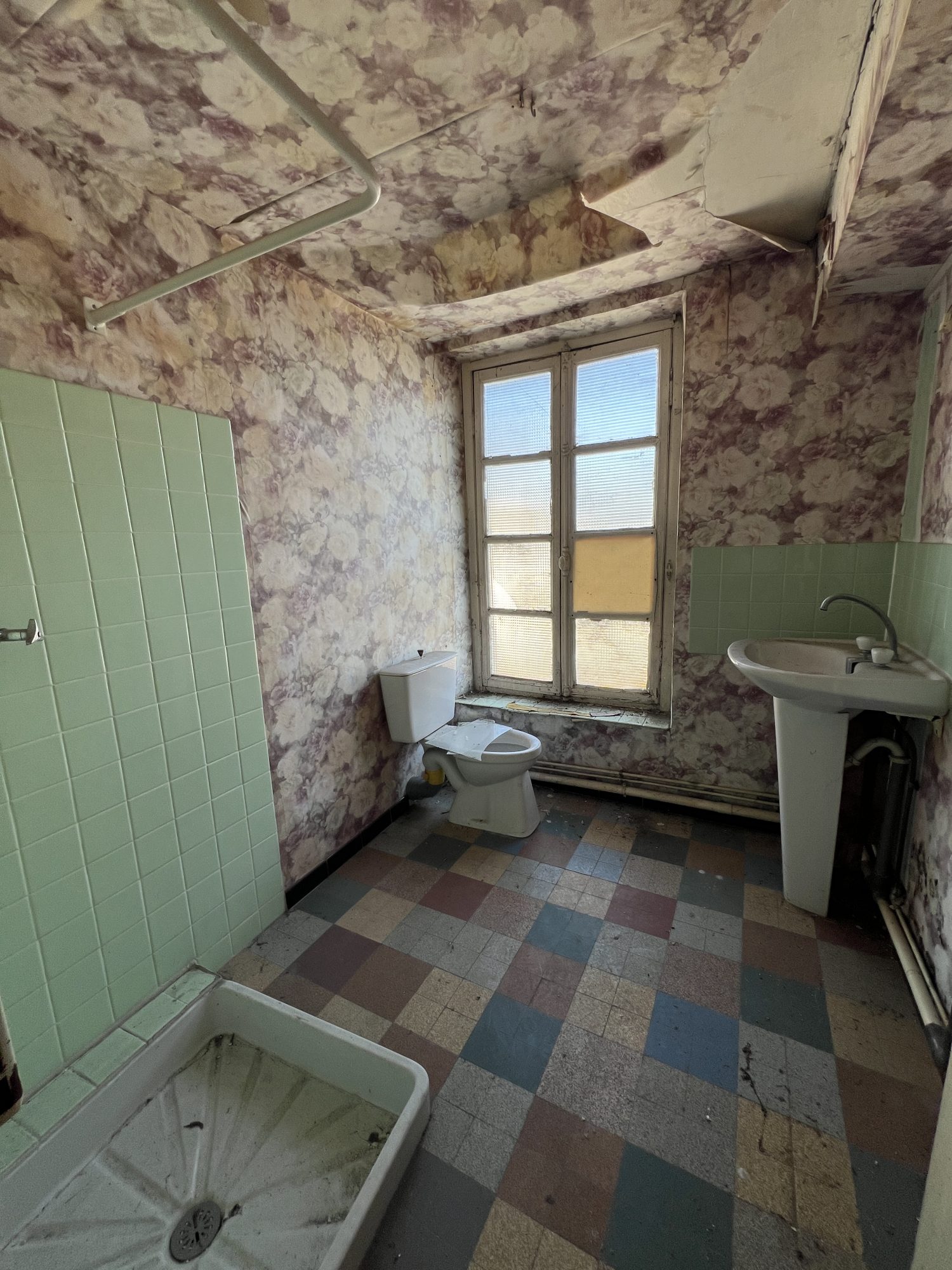 A l’étage 60 m2 : une salle d’eau avec wc, une pièce et une chambre.