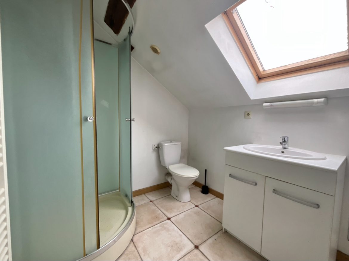 A l’étage : un palier dessert deux chambres, une salle d’eau avec wc.