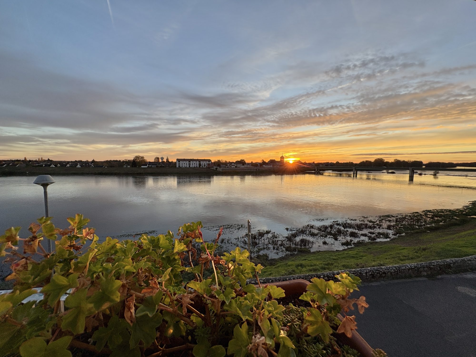 A l’étage : un palier desservant une chambre et un bureau donnant également plein sud avec cette admirable vue sur la Loire, une salle d’eau avec wc.