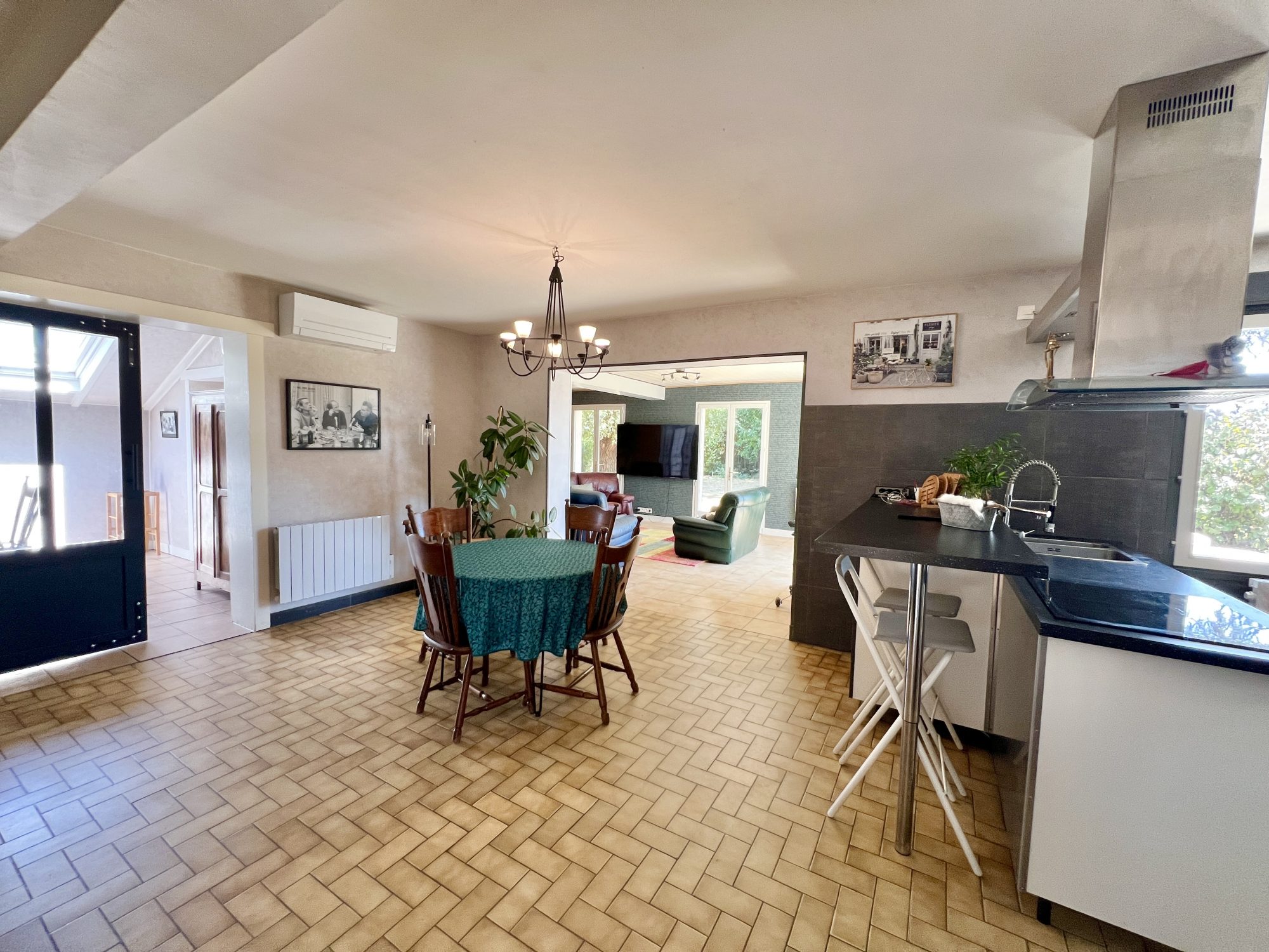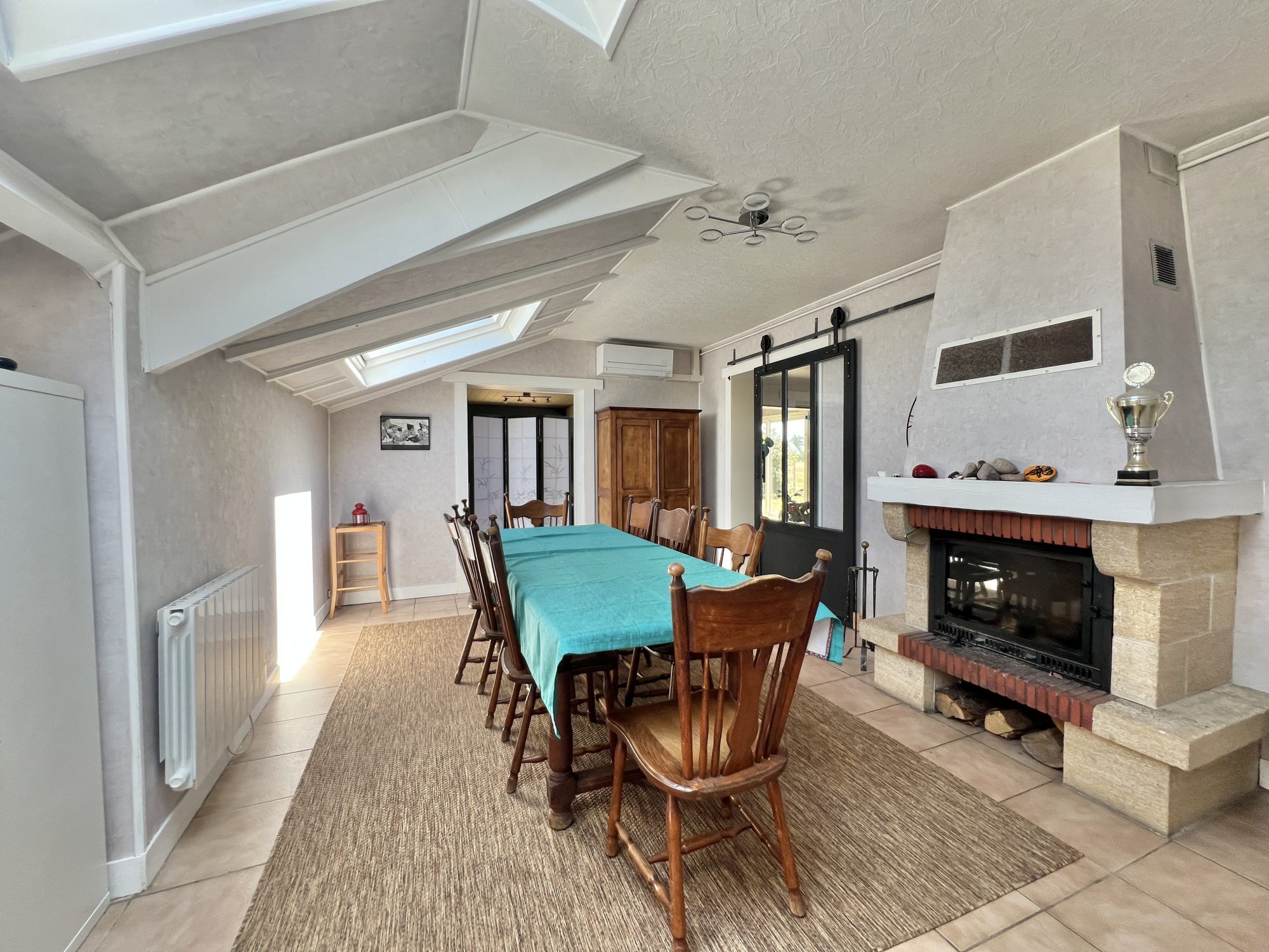Les espaces, le mode de chauffage économique ( pompe à chaleur, ballon thermodynamique), volets roulants électrique contrôlable à distance. LE CALME.