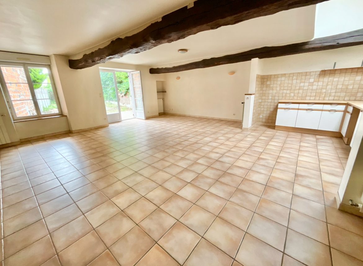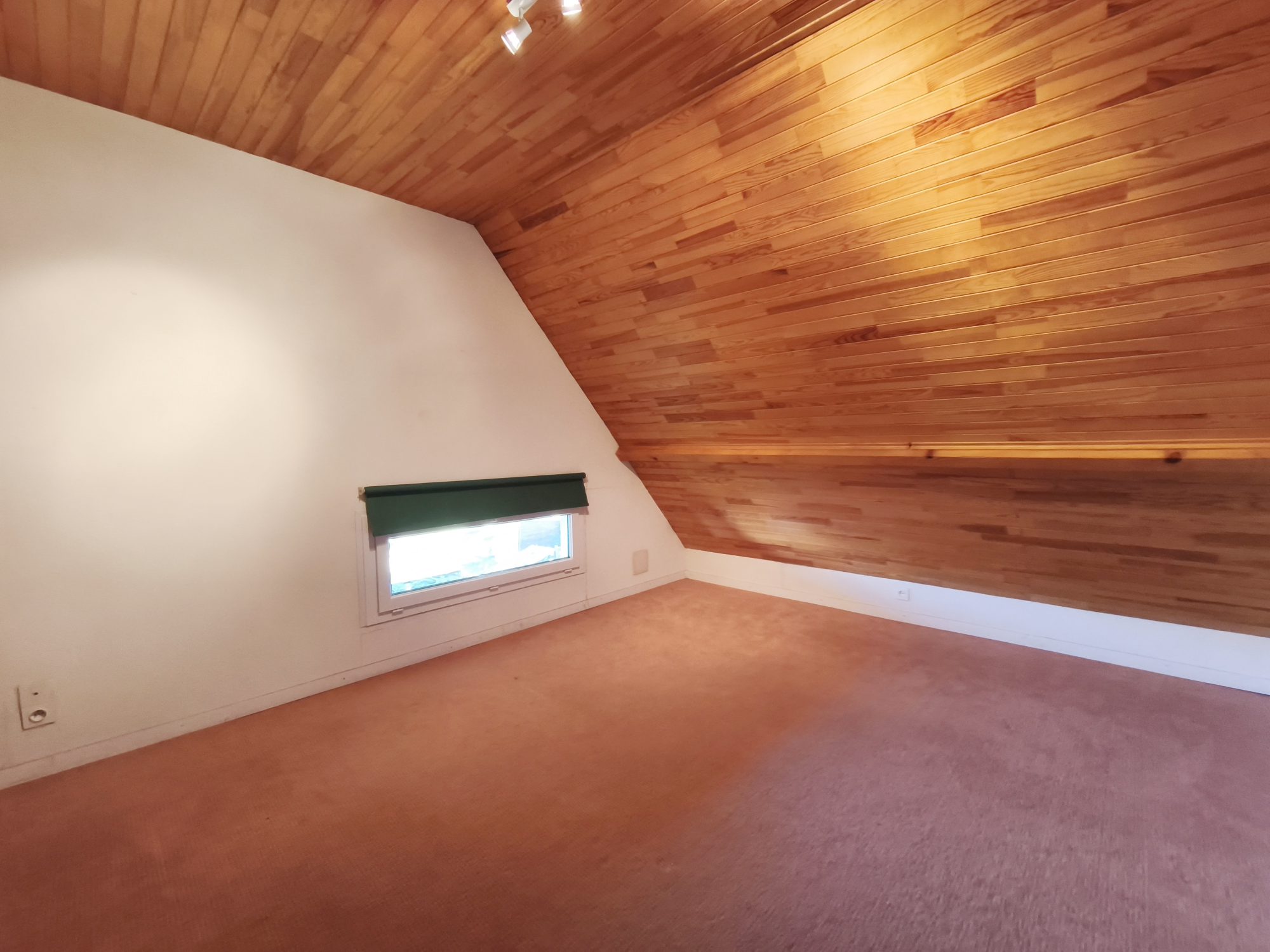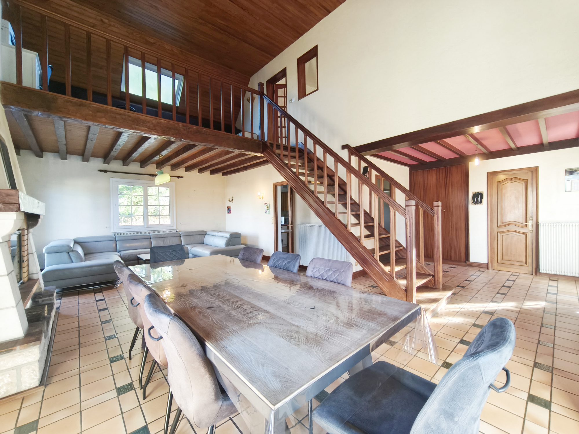 Un entrée avec placard, une pièce de vie cathédrale avec une cheminée, une cuisine séparée aménagée/équipée, un dégagement avec placards, deux grandes chambres avec placard, une salle d’eau et un wc séparé.